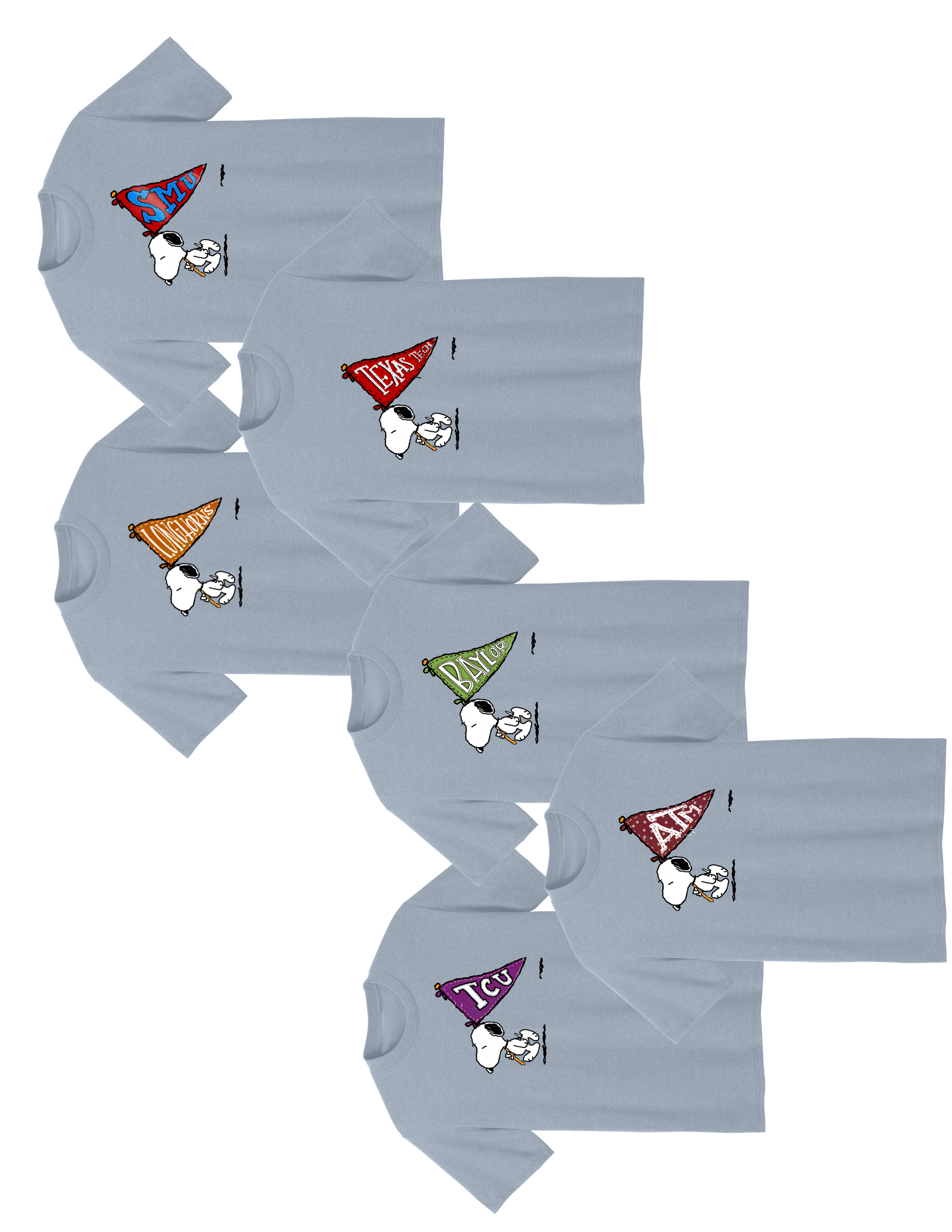 Snoopy carries you teams flag. Available in t-shirt or sweatshirt in light grey -